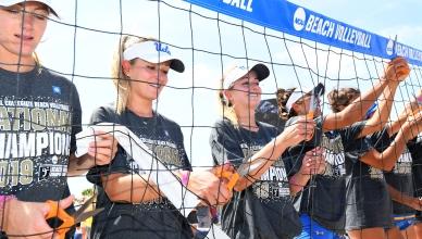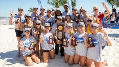 College Beach Volleyball - Home NC beach volleyball TCU wins first beach volleyball championship Full bracketchampionship history Match points Final set and celebration of TCU's first-ever NCAA beach volleyball championship USC match point, celebration at 2023 NCAA beach volleyball championship USC match point, celebration at 2022 NCAA beach volleyball championship USC match point, celebration at 2021 NCAA beach volleyball championship Championship highlights 2025 β TCU 3, LMU (CA) 2 2024 β USC 3, UCLA 0 2023 β USC 3, UCLA 2 2022 β USC 3, Florida State 1 2021 β USC 3, UCLA 1 2019 β UCLA 3, USC 0 2018 β UCLA 3, Florida State 1 2017 β USC 3, Pepperdine 2 2016 β USC 3, Florida State 0 NC Beach Volleyball Championship May 1-3, 2026 Gulf Place Beach | Gulf Shores, AL Sign Up For Updates Game Program How NCAA beach volleyball works: Rules, format and complete history Championship Recaps πΈ TCU wins 2025 βοΈ USC wins 2024 βοΈ USC wins 2023 βοΈ USC wins 2022 βοΈ USC wins 2021 π» UCLA wins 2019 π» UCLA wins 2018 βοΈ USC wins 2017 βοΈ USC wins 2016 π Full Championship history Follow NC Beach Volleyball