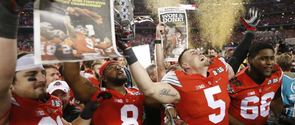 Ohio State officially formed a football team in 1890, but the Buckeyes wouldn’t win a national championship until 1942. That year, after losing dozens of players who left to fight in World War II, Ohio State went 9-1, its only loss coming against No. 6 Wisconsin. The Buckeyes have also won a title in the BCS era (2002), the first year of the College Football Playoff (2014) and the first year of the expanded 12-team CFP (2024).