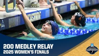DI Women's College Swimming & Diving - Home DI Women's Swimming & Diving Virginia captures its fifth consecutive DI women's swimming and diving title Champs HistoryRelated videos Championship highlights Walsh breaks 100-yard freestyle record Record-setting women's 100 butterfly Women's 800 freestyle relay Women's 200 medley relay Division I Women's Swimming & Diving Championships March 18-21, 2026 Georgia Tech Aquatic Center | Atlanta, GA Sign Up for Ticket Info Game Program Follow DI Women's Swim & Dive