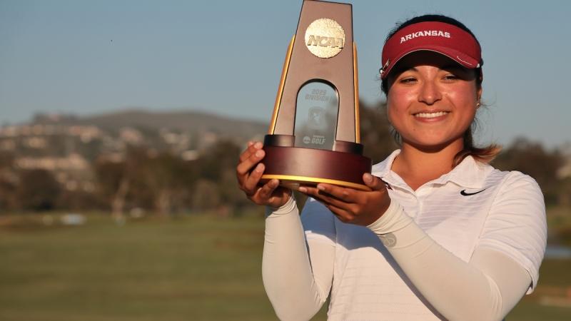 DI Women's College Golf - Home DI Women's Golf Northwestern wins 2025 NCAA DI women's golf championship Championship historyhighlights Championship highlights 2025 - Northwestern 3, Stanford 2 2024 - Stanford 3, UCLA 2 2023 - Wake Forest 3, Southern California 1 2022 - Stanford 3, Oregon 2 2021 - Ole Miss 4, Oklahoma State 1 2019 - Duke 3, Wake Forest 2 2018 - Arizona 3, Alabama 2 Individual titles Arkansas' Maria Jose Marin wins 2025 title Texas A&M's Adela Cernousek wins 2024 title Stanford's Rose Zhang wins second-straight title in 2023 Stanford's Rose Zhang wins 2022 title Stanford's Rachel Heck wins 2021 title Arkansas' Maria Fassi wins 2019 title Wake Forest's Jennifer Kupcho wins 2018 title Division I Women's Golf Championship May 22-27, 2026 Omni La Costa Resort & Spa | Carlsbad, CA Sign Up for Ticket Info Game Program NCAA women’s golf individual and team champions from 1982 to today Championship Recaps 😼 Northwestern wins 2025 🌲 Stanford wins 2024 🎩 Wake Forest wins 2023 🌲 Stanford wins 2023 🦈 Ole Miss wins 2021 Highlights from the college careers of the USA women's golf roster at the 2024 Olympics Follow Women's Golf
