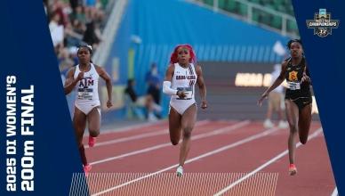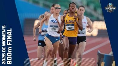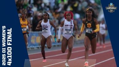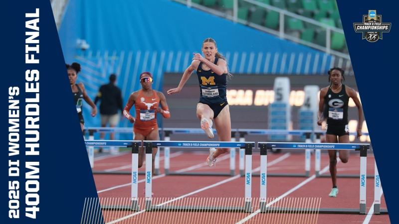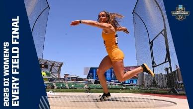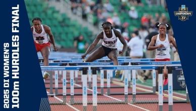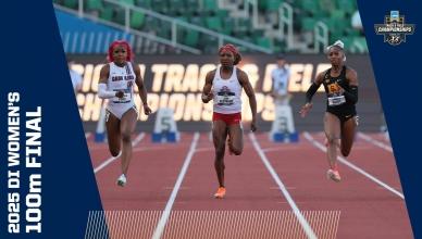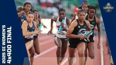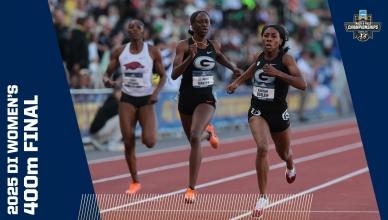 DI Women's College Outdoor Track & Field - Home DI Women's Track and field (o) Georgia wins women's outdoor track and field title Bowerman finalistsChampionship highlights Headlines Here are the 2025 finalists for The Bowerman in track and field The 2025 Bowerman Finalists for men's and women's NCAA track and field Every track and field record broken in 2025 2025 CHAMPIONSHIP Michigan's Savannah Sutherland breaks Sydney McLaughlin's NCAA record to win 2025 400 hurdles title Alabama's Doris Lemngole becomes first woman in NCAA history to run sub-9 in steeplechase 4x100m final 4x400m final 100m final Aerial view of 100m 100m hurdles final 200m final 400m final 800m final 1500m final 5000m final 10,000m finals Every field event final Bowerman The Bowerman: Complete history of the track and field honor How the Bowerman watch lists predict the award's final winner The top moments from Bowerman winner Parker Valby's 2024 season The top moments from Bowerman winner Julien Alfred's 2023 season The top moments from Bowerman winner Abby Steiner's 2022 season All-Time Relays The Texas women's track and field all-time relay team The Oregon women's track and field all-time relay team The LSU women's track and field all-time relay team The USC women's track and field all-time relay team history Here are the HBCU track and field student-athletes to win a DI NCAA title The 6 most dominant women’s sprint performances in NCAA outdoor championship history The most dominant women’s team performances in an individual outdoor event in NCAA history The 5 most dominant women’s distance running seasons in NCAA history Track 101 Wind and scoring in track and field, explained Track and Field FAQs: Can you touch hurdles, dropping batons, false starts and more How the outdoor track and field championships work How the first USTFCCCA rankings predict the women's champion Here are the differences between the indoor and outdoor track seasons What's the difference between the 1500 meters and Mile events — and not just the 109-meter distance The most unbreakable — we think — records in women’s track and field NCAA Video Vault The track comeback to end ALL comebacks Kentucky's Sydney McLaughlin wins hurdles title after a hail storm How Clemson’s Brianna Rollins broke the 100m hurdles record TWICE in 1 meet Division I Women's Outdoor Track & Field Championships June 10-13, 2026 Hayward Field | Eugene, OR Tickets Game Program NCAA track championship finishes that keep getting more dramatic Here are the DI track and field teams with most NCAA championships Every indoor and outdoor track and field individual event champion since 1990 Here are the HBCU track and field student-athletes to win a DI NCAA title Track and Field FAQs: Can you touch hurdles, dropping batons, false starts and more How the outdoor track and field championships work The Bowerman: Complete history of the track and field honor The greatest venues in outdoor track and field, according to you These are the best uniforms in track and field, according to you Sha'Carri Richardson: College track career, times, highlights, records at LSU More DI Track and Field News Former NCAA track and field stars at the 2025 World Athletics Championship Tracking 2025's track and field transfer portal moves Every indoor and outdoor track and field individual event champion since 1990 The 2025 Bowerman Finalists for men's and women's NCAA track and field Follow NCAA Track and Field