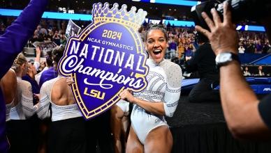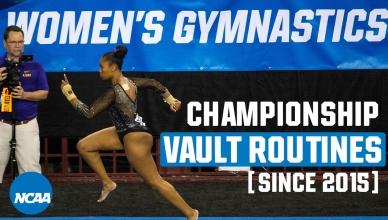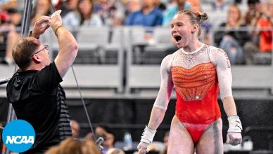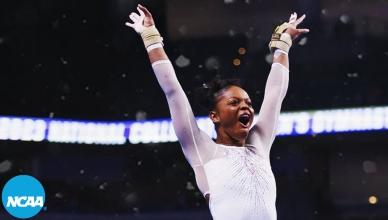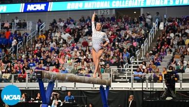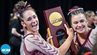 Women's College Gymnastics - Home NC Women's Gymnastics Oklahoma wins 2025 NCAA women's gymnastics national title 🏆 BracketFull final rotation Championship highlights Full final rotation from Oklahoma's 2025 NCAA women's gymnastics title win LSU wins 2024 women's NCAA gymnastics championship Oklahoma wins 2023 NCAA gymnastics championship Oklahoma wins the 2022 women's gymnastics national championship Stars of 2025 Jordan Chiles - Every routine from 2025 gymnastics championships Jade Carey - Every routine from 2025 gymnastics semifinals Grace McCallum - Every routine from 2025 gymnastics semifinals Leanne Wong - Bars at 2025 NCAA gymnastics semifinals Gymnastics 101 College gymnastics scoring, explained How the NCAA college gymnastics championship works College gymnastics 101: A guide for football, basketball and other sports fans A mainstream sports fan’s guide to choosing which college gymnastics team to support All-time history NCAA women's gymnastics teams with the most national championships NCAA women’s gymnastics individual all-around champions, since 1982 Career perfect 10 leaders in women's college gymnastics The 14 gymnasts who have recorded a gym slam in women's gymnastics All-Around Champions Jordan Bowers - Every routine from 2025 gymnastics individual all-around champion Haleigh Bryant - Every routine from 2025 gymnastics individual all-around champion Maile O'Keefe - Perfect 10 on beam to clinch 2023 all-around title Trinity Thomas nails Perfect 10 on floor to win all-around 2022 NCAA gymnastics title Perfect 10s Trinity Thomas ties all-time NCAA Perfect 10 record on final vault of her college career Maile O'Keefe - Perfect 10 on beam to clinch 2023 all-around title Jordan Chiles — Perfect 10 on floor at the 2023 NCAA gymnastics regional final Watch Suni Lee's Perfect 10 on beam at 2022 NCAA gymnastics regional finals Trinity Thomas completes season slam at regionals with two Perfect 10s Peng Peng Lee's perfect 10 to clinch 2018 NCAA championship for UCLA Watch Ashley Miles' perfect 10 floor exercise at 2005 NCAA finals Watch Kristen Maloney's perfect 10 on floor for UCLA at 2005 NCAA championships Most popular Every NCAA gymnastics championship beam routine from 2014-19 Every NCAA gymnastics bar champion routine from 2012-19 Every NCAA gymnastics floor champion routine from 2014-19 Every NCAA gymnastics vault champion from 2015-19 NC Women's Gymnastics Championships April 16 - 18, 2026 Dickies Arena | Fort Worth, TX Tickets Game Program NCAA Gymnastics x Olympics 📓 History of Olympians in NCAA gymnastics 🇺🇸 All USA Olympics women’s gymnastics members’ NCAA titles NCAA gymnastics leotard trends through the decades NCAA gymnastics leotard trends through the decades (1980s-2010s) Making Black history in NCAA gymnastics The four most-breakable records in NCAA gymnastics 5 special NCAA gymnastics records — and who might have an outside shot at breaking them More Gymnastic News Oklahoma wins 2025 NCAA women's gymnastics national championships Jordan Chiles - Every routine from 2025 gymnastics championships Jordan Chiles - Floor at 2025 NCAA gymnastics championship Jordan Chiles - Every routine from 2025 gymnastics semifinals Grace McCallum - Every routine from 2025 gymnastics semifinals Jade Carey - Every routine from 2025 gymnastics semifinals Jordan Bowers - Every routine from 2025 gymnastics semifinals Follow NC Women's Gymnastics